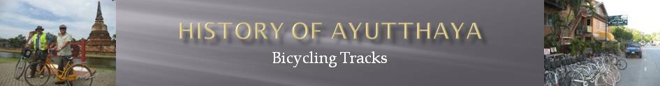 | TRACKS Tracks off the city island Ayutthaya Northern Bicycle Track 1 Ayutthaya Northern Bicycle Track 2 Ayutthaya North Eastern Bicycle Track 3 Ayutthaya South Eastern Bicycle Track 4 Ayutthaya Eastern Bicycle Track 5 Ayutthaya Southern Bicycle Track 6 Ayutthaya Western Bicycle Track 7 Tracks on the city island Ayutthaya City Island Bicycle Track 8 Ayutthaya City Island Bicycle Track 9 Ayutthaya City Island Bicycle Track 10 Tracks to other sub-districts Ayutthaya - Bang Pa-In Bicycle Track (visit to the Summer Palace) Ayutthaya - Nakhon Luang Bicycle Track (visit to Prasat Nakhon Luang) Tracks to other provinces Ayutthaya - Pa Mok Bicycle Track (visit to the Pa Mok Reclining Buddha) Special tracks Ayutthaya Pilgrimage Bicycle Track (visit to 9 important temples) Prang of Ayutthaya Bicycle Track Chedi of Ayutthaya Bicycle Track (upcoming) Reclining Buddhas of Ayutthaya Bicycle Track Phra Bat of Ayutthaya Bicycle Track (upcoming) (All tracks can be found on the Ayutthaya Biking Adventure website - click logo) |