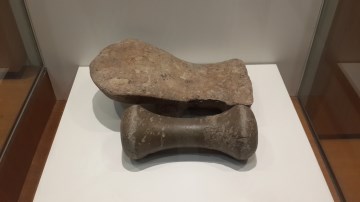 | (Grinding stone - Lopburi art (11-12th century) excavated at Trai Trueng - exhibitioned at the Kamphaeng Phet National Museum) |