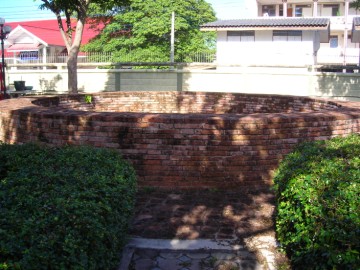 | Although few people know about it, an ancient well is located at the western side of the Ayutthaya hospital. There were once three monasteries at this location that have been destroyed. The well may have belonged to one of these temples at some time. The local legend is that there is a secret tunnel inside this well that leads underneath the Chao Phraya River. Siamese residents allegedly used it to escape Burmese invaders in 1767. Most versions suggest that the tunnel’s other exit was located inside Wat Phutthai Sawan. Interestingly, there are two wells still in situ at that monastery. There are also a number of stories about people diving into the wells to drown themselves rather than face Burmese persecution. Royal Chronicles also mention several attempts by the Burmese to burrow under a river to attack Siam. Some elderly locals swear that they actually saw this tunnel as a youth, but nobody has claimed to have entered it. The well has been repaired with modern bricks and it is now filled with water. It would be an interesting project to explore this well for a hidden tunnel. It would have collapsed long ago. |