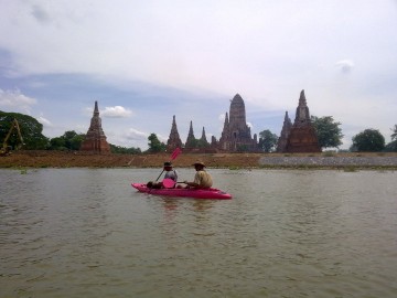 | Tips and Warnings The only location in Ayutthaya, which offers kayaks for rent is "The Seven Seas Riverside Ayutthaya", located along U-Thong Road (Soi 19) and near Khlong Chakrai Yai and the Somdet Phra Sri Nakharin Park. The small hotel has kayaks available for renting to tourists. As thus, the starting point of this kayak tour begins at “The Seven Seas Riverside Ayutthaya”. Kayaking is great fun. Paddling offers so much to so many; quiet leisure, intense adrenaline, or a path to exploration and adventure. Kayaking is a great way to access nature, experience reflective moments and to enjoy family and friends away from the distractions of life. Although paddlers should be aware of the following: wear a life jacket when paddling and be sure you are visible; know your emotional and physical limitations; prepare your trip well; remember to watch for water and weather changes; keep an eye out for other boat traffic. On the main rivers be it the Chao Phraya, the Lopburi or the Pa Sak, there can be heavy current and whirlpools. So be aware and stay close to the river banks. AHR will not be held liable for any loss or damage whatsoever for any suggestions made in relation to the site's promotion of eco-tourism. It is the responsibility of the user of the site to take the necessary precautions to avoid any physical injury, traffic incident, animal attack, theft, and damage to equipment. Any reliance on the site's information is therefore strictly at your own risk (see disclaimer on site). |