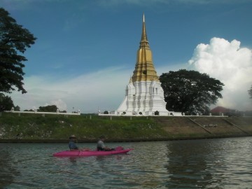 | This web page lists a number of kayak tracks, which are designed to bring you along the last remaining ancient waterways of the Historical City of Ayutthaya; as well as two multiple-days kayaking events with an historical background, organized occasionally by Ayutthaya Kayaking Experience [AKE] for its members. Ayutthaya Kayaking Experience is a sporting branch from Ayutthaya Historical Research (1). AKE’s objective is to promote kayaking tourism in Ayutthaya, by basically showing kayak presence on canals and rivers in Ayutthaya. Kayaking is the perfect outdoor recreation to explore the city island and its surroundings. Any visitor to Ayutthaya, with some kayaking experience or enough sportive stamina, interested in kayaking with AKE is welcome. More information can be found at the AKE’s website: http://AyKaEx.yolasite.com. Ayutthaya was a typically Siamese water-based settlement; one of the characteristics which gave the city its UNESCO World Heritage status. Unfortunately, Ayutthaya's waterways - the ancient transport and travel facilities - are fast disappearing. Many canals became stagnant, choked with urban trash or ran dry due to silting and lack of maintenance. Many more were claimed to make way for embankments such as concrete roads. On the city island only a few canals remain of which Khlong Makham Riang and Khlong Tho are the largest, but regrettably, they look like open sewers. Ayutthaya, “The Venice of the East", became a far cry. But not everything is lost. Water still plays a vital role for the local communities, who use the canals to fish, bathe, wash dishes and clothing, and irrigate their gardens. Children still run along its banks and swim in its muddy waters, filled with a diversity of fishes and wild life. Birds still live in abundance in the lush vegetation along the forgotten canals; a paradise for bird lovers. Off the city island, we still find some navigable canals, however the seasonal aspect has to be taken in mind. Some canals tend to have low water levels in the hot period and the packs of water hyacinth can be a burden. Kayakable canals are: in the north the old Lopburi River presently called Khlong Hua Ro; in the east - in the ancient Ayodhya area - Khlong Hantra and in the south Khlong Takhian. Glide your way down the Ayutthayan canals and its gentle tidal rivers, between lush verdant forest and ancient monasteries; a perfect opportunity for birding and observing wildlife. On this website you will find different tested kayak tracks described for each of these zones. Additional information and photographs on Points of Interest, Reference Points and the History of Ayutthaya (including downloadable PDF-files on subject) can be also found on this website. |