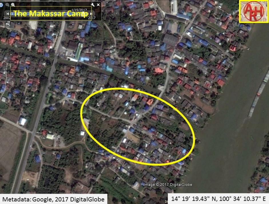 | The Makassar Camp The Makassar Camp must have been situated in present Ban Tha Khia (1) and was bounded in the north by the Takhian Canal, (2) in the east by the old Lopburi River, (3) in the south-west by a marsh. This marsh, inexistent today, could only be crossed by a 4-meter-wide path. |