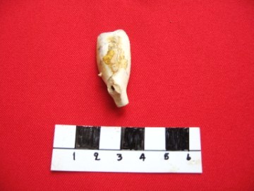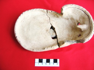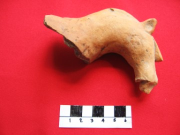 Object data in appearance to a griffin-horse. Probably made as a child's toy. Size: 9 cm x 3,4 cm Period: 16th-17th century Excavation data Unearthed during excavations at San Petro village Site Number: B11 Stratum: 100-150 cm |