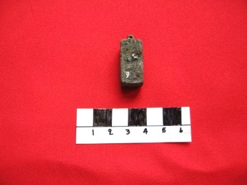 Object data Bronze weight. Oblong bar for use as a weight on scales. Ayutthaya style. Size: 2,1 cm x 1,2 cm x 2 cm Period: 16th-17th century Excavation data Unearthed during excavations at San Petro village Site Number: D4 Stratum: 200-250 cm |