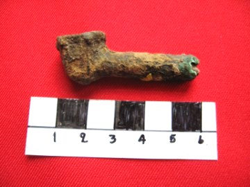 Object data Steel key. Ayutthaya style. Large key with a ring at one end. Probably a door key. In poor condition. Size: 10,7 cm Period: 16th-17th century Excavation data Unearthed during excavations at San Petro village Site Number: B10 Stratum: 100-150 cm |