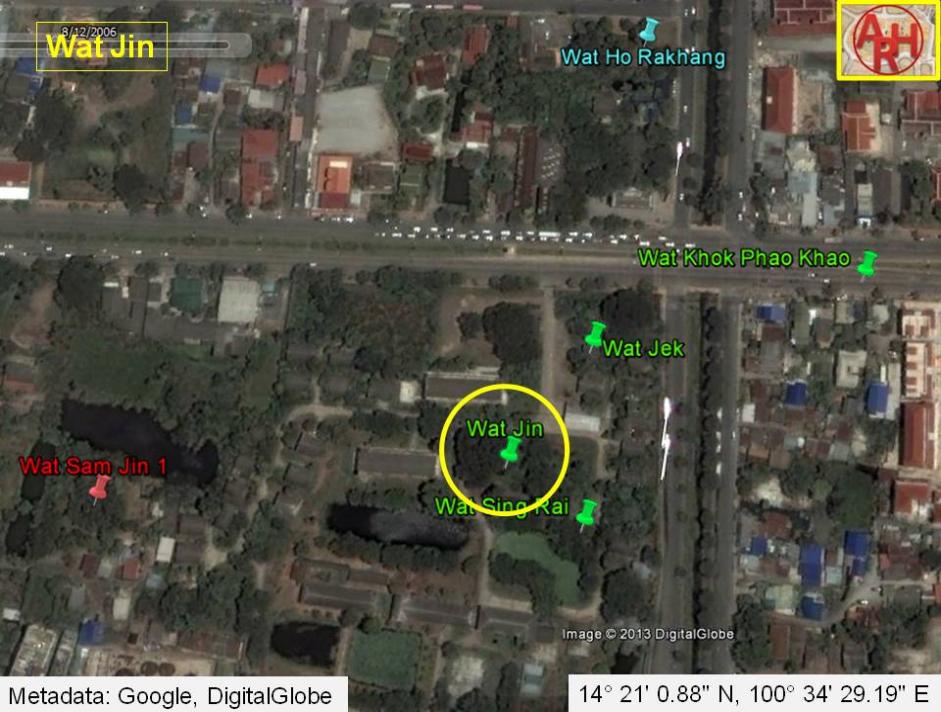| Addendum The site is located in geographical coordinates: 14° 21' 0.88" N, 100° 34' 29.19" E. Making an assessment of all the monastic structures, in the zone demarcated by Chikun Road, Pa Thon Road, Pridi Banomyong Road and U-Thong Road is rather difficult, as the position and name of the structures vary on different maps. On a 19th century map, there are 15 structures counted, while on the 20th century PBR map there are 13 mentioned. There is inconsistency in the names and the positions. Even maps drafted by the Fine Arts Department, what I presume, based on excavations in the zone, shed no light on this matter. Positions of monastic structures can be asserted, but their ancient names will remain questioned forever. |