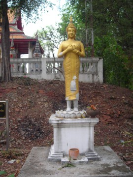 | This temple is located far away from the city island in the southeastern section of the city. Its closest landmark is the Asian Highway (#32), but this temple can also be located via a shortcut from Grand Street. Wat Khao Din is situated on the eastern side of the Asian Highway. The sparsely populated district where it is located is named after this monastery. Wat Khao Din marks the easternmost perimeter of this website’s research. Wat Khao Din is an active countryside temple that appears on the 1993 Fine Arts Department map. It was built on the site of an earlier monastery from the Ayutthaya period. It should not be confused with another temper under the same name near Wat Samana Kottharam. There is nothing visible above the ground at the second eastern monastery known as “Wat Khao Din”. In contrast, the Wat Kao Din by the Asian Highway has a thriving community of Buddhist monks. Therefore, it also has the usual structures needed to provide clerical services (monks’quarter, sermon hall, bell tower crematorium, etc.). The most outstanding feature of Wat Kao Din is its ordination hall. This building was constructed directly on top of the previous ubosot, creating a highly upraised mound. The basic foundation walls of the older structure are easy to view. Various layers are visible on every side of the new ordination hall. This includes portions of ancient staircases and some debris from old Buddha images. It was probably easier to build a new structure on the previous site than to restore the old one. The new ordination hall has high walls and elaborately defined porticos. The capitals of its pillars are crowned with swan-like Hansa, and its sema stones are sheltered inside of their individual pedestals. The new ordination hall reflects the style of the Bangkok period. There are also many Buddha images scattered outdoors in increments at the base of the ordination hall. These appear in various styles and poses. Some of the old staircases are adorned with Bangkok-period Naga serpents with mirrored-tiles. The chedi in situ are recent constructions. There is an old canal behind Wat Kao Din, which ultimately leads to Wat Krasang and Khlong Hantra (the old Pa Sak River). This canal probably connected rice farmers to the ancient city so that they could conduct trade. The canal has been covered due to the construction of the Asian highway. It has formed ponds at the monastery as a result. The history of this temple remains a mystery at this point. Its countryside location suggests that it was used by commoners who were mostly likely engaged in rice cultivation. The exact date of its establishment is unknown. |