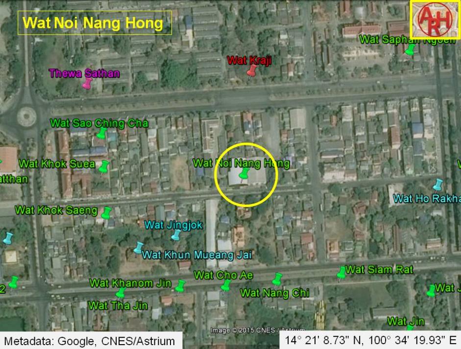 | Wat Pa Takua or the Monastery of the Lead Quarter is a defunct temple formerly located on Ayutthaya's city island outside the Historical Park in present Pratu Chai Sub-district. Following a map of the 19th century the monastery was situated along the west bank of Khlong Pratu Nai Kai, presently called Makham Riang canal. Wat Kraji stood to its north and Wat Trae (defunct) to its south. Wat Khok Sua (defunct) and Wat Khok Rak (defunct) to its west. Historical data about the monastery and its construction are unknown. The 19th century map indicates the existence of a minor prang. The temple is not mentioned on Phraya Boran Rachathanin's map drafted in 1926. When working with an overlay of the 19th century map, the location of Wat Pa Takua coincides with the grounds of present Wat Noi Nang Hong. The site was likely situated in geographical coordinates: 14° 21' 8.73" N, 100° 34' 19.93" E. Making an assessment of all the monastic structures, in the zone demarcated by Chikun Road, Pa Thon Road, Pridi Banomyong Road and U-Thong Road is rather difficult, as the position and name of the structures vary on different maps. On a 19th century map, there are 15 structures counted, while on the 20th century PBR map there are 13 mentioned. There is inconsistency in the names and the positions. Even maps drafted by the Fine Arts Department, what I presume, based on excavations in the zone, shed no light on this matter. Positions of monastic structures can be asserted, but their ancient names will remain questioned forever. |