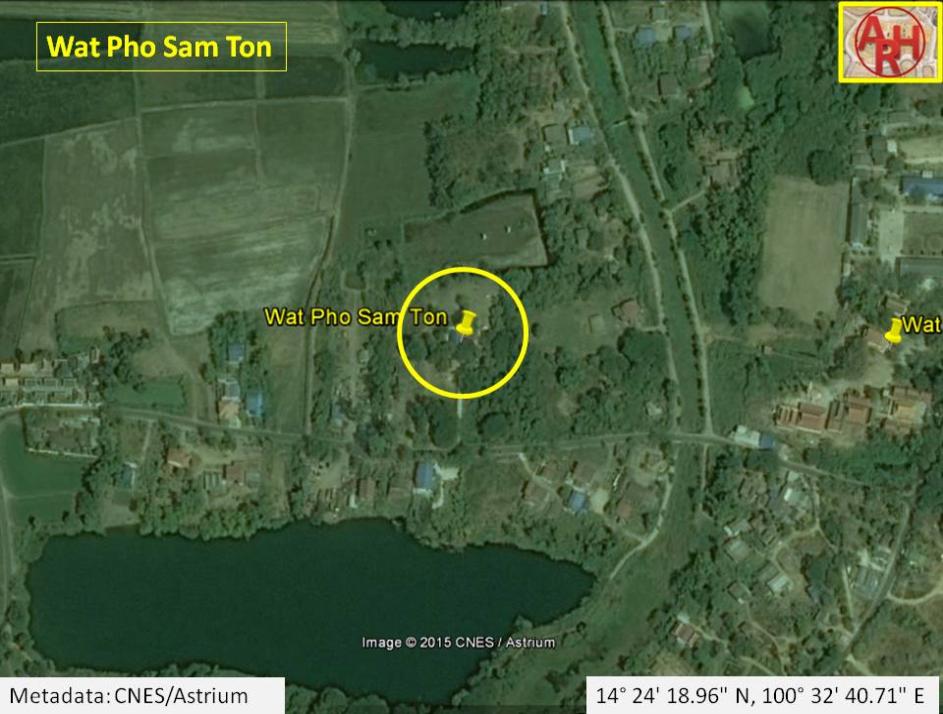 Wat Pho Rang or the Deserted Monastery of the Fig Tree was located north of Ayutthaya located in the Pho Sam Ton fields of Pho Sam Ton Sub-district of Bang Pahan in Ayutthaya Province. The mound with commemoration sala is located opposite Wat Dao Khanong on the west bank of Khlong Ban Muang and on the north bank of Khlong Chang. In 2013 the sala was changed into a vihara and a monk came to reside in the location. From the old monastery remains only a brick mound on which a commemoration vihara had been built. The former monastery was completely dismantled in the Siamese-Burmese war of 1766-67 and the bricks used to construct the Burmese fortification slightly north of the temple site. The vihara contains five Buddha images, which were repaired between March 1999 and January 2000, in the way that the core remains of the old sandstone Buddha excavated on the spot, were incorporated in the newly made images. The vihara was inaugurated on 4 February 2000. Phra Racha Sang Worayan (พระราชสังวรญาณ - พุธ ฐานิโย) of Wat Pa Salawan (downtown Nakhon Ratchasima) was the inceptor of the restoration of the Buddha images. He died during the restoration works on 15 May 1999. Wat Pho Rang was the community temple of old Pho Sam Ton village and situated on the right bank of the old Lopburi River, which is called today Khlong Ban Muang and its extension further south, Khlong Bang Khuat. It stood also on the north bank of the loop of the old Lopburi River, on a stretch called Khlong Chang last century. The temple stood as thus on the crossroad of waterways. In the epic 16th century Siamese poem "Khun Chang Khun Phaen", we find a possible reference to the area of this temple. "They marched to the mouth of the Bang Lang Canal and crossed over to the side with houses. Porters dropped the loads which had bounced up and down until the frames loosened. They untied the shoulder poles to take a rest. As soon as they had eaten some winged beans, Phlai Kaeo ordered the troops to march on to the start of the route they would travel. ‘Unharness the elephant and horses and wait for me at the salaof Wat Pa Fai.’ The troops saluted their chief and moved off immediately. Left alone, Phlai Kaeo looked around and saw the boat of Phim and his mother at mooring. He went down from the sala to meet them, and the three talked together on important matters. As he was going far away to war with consequences unknown, they would plant three bo trees and pray that if disaster struck any one of them, one of the bo trees would be disfigured in a similar way. They went off to look around for bo tree shoots, and dug them up, taking care not to wrench them sharply or snap the roots, and to keep a nice clump of soil. They loaded the shoots on the boat, crossed the river, and dragged the bows up the bank. They got down and carried the bo trees to a site marked by a big tree. They made offerings to the gods which resided in that spot, and then dug holes. Each planted one of the shoots and each made a wish. Thong Prasi made the first wish. ‘If I pass away and cannot survive, may this bo tree of mine die. If I’m sick, may the bo tree sicken in the same way. If I’m hale and hearty with no suffering, may this bo tree be bushy, lush, and cool for anyone to see.’ With these words, she lifted the bo tree and put it in the front hole. Next, Phlai prayed to the gods: ‘I’m going off to war. If I gain victory over the enemy, may this bo tree sprout profusely. If I die, may this bo tree die too. If I’m not sick, may this bo tree be healthy and flourish. If I have success in war, may it be beautifully green, lush, and bushy.’ With this wish, he lifted the bo tree along with its roots into the hole, pushed in some soil, and tamped it down. Phim’s tears spattered down. She raised her hands and paid respects to the gods of the place, and then collapsed, racked with sobs. She cradled the little bo tree in a daze. ‘Oh lords, gods of great power, with this bo tree of mine, I pray that if at home my body should die and spirit be snuffed out, may this bo tree likewise sicken and die. As long as I have life, may it not die, but grow happily to be so lush and shady that even the nectar of the gods bears no comparison. Should my body sicken, wilt, and waste away, may the leaves of the bo tree wither and look strange.’ With this wish, she planted the shoot, her face bathed in tears. They heaped earth around the three holes and poured water. Each took off their sabai, folded it, and gently wrapped around each of the trees. ‘We call on the gods, that the cloth tied on each bo tree is a mark that we three will be far away from one another. On return, may we succeed in meeting together again Should any one of us die, may that person go happily to heaven above, to be born again in the next life. May we meet together with certainty for a hundred ages and one hundred thousand eras into the future until reaching nirvana.’ Having wrapped the three bo trees, they left the wishing place and boarded the boat which the servants poled out and paddled away.[1] History cannot tell us whether the village of Pho Sam Ton was called after the story or the story was called after the village. Where exactly the old village was situated is not known, but very likely it should have been in the vicinity of this temple. Wat Pho Sam Ton is situated in Geo. Coord.: 14° 24' 18.96" N, 100° 32' 40.71" E. References: [1] The Tale of Khun Chang Khun Phaen - Siam’s Great Folk Epic of Love and War - Translated and edited by Chris Baker and Pasuk Phongpaichit (2010) - Chap 9: Phlai Kaeo leads the army. |