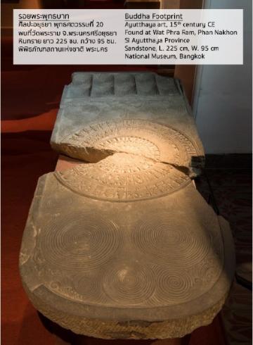 (Buddha footprint excavated at Wat Phra Ram and displayed at Bangkok National Museum) |