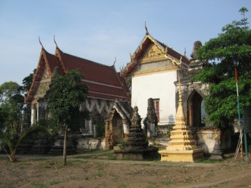 | Wat Sawang Arom or the Monastery of the Enlightened State of Mind is located off the city island on the roght bank of the Lopburi River in the northern area of Ayutthaya. The temple is situated in Suan Prik Sub-district along the road leading from the Elephant Kraal towards the Asian Highway. In situ is an old vihara and ordination hall. The vihara is rather small and has an inner and an outer wall. The outer wall has four gates with pointed ornamented arches at the cardinal points and massive (sala-like) decorated buttresses at the corners, which makes it rare. The gates have porticoes on their inner and outer sides. The inner wall is nicely decorated with lotus shaped holes to insert candles. The temple is in use by the Buddhist clergy. Historical data about the monastery and its construction is unknown. The site is mentioned on Fine Arts Department maps drafted in 1993 and 2007, but is not indicated on Phraya Boran Rachathanin's map of 1926. Wat Sawang Arom is located in geographical coordinates: 14° 23' 53.25" N, 100° 33' 39.95" E. |