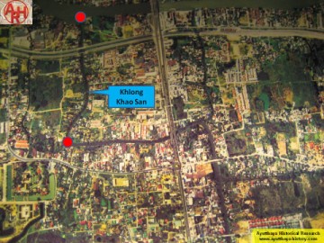 | Khlong Khao San or the Canal of the Milled Rice flows on the border between Phai Ling and Suan Phlu Sub-district. It links Khlong Dusit with the Pa Sak River. At par with Khlong Hantra, Khlong Kramang and Khlong Dusit, this canal was probably once a stretch of the Pa Sak River. [1] This canal is also referred to as Khlong Ko Kaeo. [2] The King of Hongsawadi, having spoken, marched his army down to Ayutthaya on the following day, on Wednesday, the tenth day of the waning moon of the second month, 911, a year of the cock, first of the decade. The army of the Uparat, the vanguard, set up its stockade in Phaniat Township. The stockade of the King of Præ, the left wing, was set up at Thung Wat Photharam Township to Kò Kæo Canal. Khlong Khao San houses only one active Buddhist monastery, Wat Ko Kaeo at its mouth on the southern canal bank. The canal forms two islands: a northern island, bordered by a stretch of the Pa Sak River, Khlong Ban Bat and Khlong Dusit and a southern island, called "Ko Kaeo" or "Crystal Island" formed by a stretch of the Pa Sak River and Khlong Khanom Tan. In the Ayutthayan era, a thriving floating market existed at its mouth (Pak Khlong Khao San floating market). [3] The canal probably ran into the Front city moat, as King Maha Thammaracha (r.1569- 1590) let dug an extension of the canal of the moat in front of the capital from the Mae Nang Plum monastery down to the mouth of Khao San canal. (1) [4] Khlong Khao San can be paddled by kayak. A description of the Khao San kayak trip can be found on this web site under the section "kayaking". Footnotes: (1) The Front city moat became in 1584 a riverbed of the Lopburi River. (See the essay "The quest for the holy water: Ayutthaya’s ever-changing waterways". References: [1] Our Wars with The Burmese - Prince Damrong Rajanubhab (1917) - Re-edited White lotus (2000). [2] The Royal Chronicles of Ayutthaya – Richard D. Cushman (2006) - page 47 / Source: Phan Canthanumat, British Museum, Reverend Phonnarat, Phra Cakkraphatdiphong & Royal Autograph. [3] Discovering Ayutthaya - Charnvit Kasetsiri & Michael Wright (2007) - page 271. [4] Our Wars with The Burmese - Prince Damrong Rajanubhab (1917) - Re-edited White lotus (2000). |