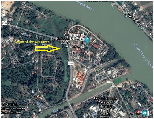 | Ban Chai Nat was a strategic outpost of the San Buri (present Sankha Buri) area. It was situated at a bifurcation of the Chao Phraya River, 50 Km south of Nakhon Sawan. At Ban Chai Nat, the main river split up in two distributaries; the western distributary called today the Noi River and the eastern distributary called the Chao Phraya River, on which the Chao Phraya Dam is situated. The whole area of Chai Nat was of military importance as a couple of kilometers north of Ban Chai Nat, the Tha Jin River split off from the Chao Phraya River in today's Hat Tha Sao Sub-district. |