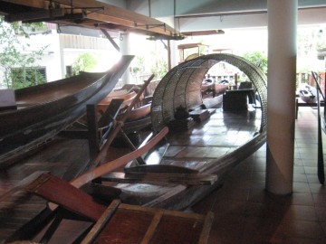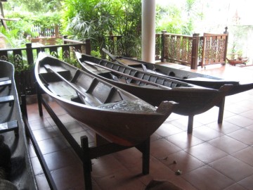 The Thai Boat Museum is located on the city Island on Bang Ian Rd, a road just opposite Wat Maha That. It is a self-sponsored museum containing a real treasure of old Siamese boats, boat miniatures and a library dedicated to boat and boat building. The founder of the museum is Mr. Paithun Khaomala, born in Ban Ko sub-district of the Amphur Krung Kao (presently Ayutthaya District). Mr. Paithun has been all his life intrigued by boats and their construction. He has been teaching boat building for nearly four decades at the Ayutthaya Boat Building School located on Ko Loy, opposite the Front Palace. In 1990 he was recognized as an outstanding ship building teacher and the year there after he was honored by the Ayutthaya Province as an outstanding Alumnus of the Phra Nakorn Ayutthaya Teacher College. He used to build miniature boats in order to teach boat construction and continued with it after his retirement. Mr Paithun wrote four technical volumes on Thai boat building. His wish has always been to teach those of later generations the Thai knowledge and traditional craft and skills, as well as Thai perseverance, in building boats of various kinds. Mr. Paithun was so in love with its work that he and his wife Mrs. Ratana sold their land in Pathum Thani province and bought land here in Ayutthaya in order to build a two-storey Thai styled house to serve as a boat museum. The museum is composed out of three areas. The lower floor of the first building exhibits traditional wooden Siamese boats of various kinds, made of different woods such as Mai Sak (Teak wood) and Mai Takhian (Iron Malabar wood), used for different purposes. Some boats are more than 100 year old. We find here examples of "rua mo", "rua mad", "rua chala", "rua sampan", "rua pong", "rua phai ma", etc. The lower floor of the second building houses the workshop and a beautiful collection of boat and ship miniatures. Here you can admire exquisite miniatures of the royal barges: Suphannahong, Anantanakharat and other Krabi boats, all made by Mr. Paithun. The dozens of scale models are really impressive. In the garden we find the more larger boats such as rice barges, a market boat, a scorpion tailed boat and Mr. Paithun's own boat. Boat fanatics, captains and water lovers do not miss this! Visitors to the Thai Boat Museum are kindly requested to give a call prior their visit (035/241195), although if the family is at home and you pass by and ring the bell, you have a good chance they allow you in. The museum can be visited every day. The museum is unfortunately not subsidized neither by the City of Ayutthaya, nor the Province which is truly a shame. All costs are borne by the family, so a small token of your generosity can be left at the tip box at the workshop, in order to keep Mr. Paithun's life work safe. The latter's work will be safeguarded for the future by his son. Mr. Kanok, presently manager of the museum. |