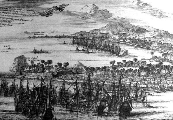 | (Print of the attack on Makassar, 12 June 1660, from Wouter Schouten’s travel account) |