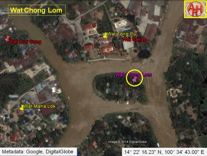 Khlong Chong Lom separates Ko Chong Lom from Ko Loi. Khlong Chong Lom has been dug in the early 20th century to reduce the whirlpools near Wat Tong Pu and the Chantra Kasem Palace, separating Wat Chong Lom from the eastern mainland. As the Lopburi River and the canal leading to the Pa Sak River were joining near Wat Tong Pu and the erosive force of the joint waterways (incliding the waters coming from Khlong Hua Ro, the old Lopburi River) were destroying the embankment in front of the Chantra digging of Khlong Chong Lom. Khlong Sai, a small canal cutting through the eastern main land, from Wat Chong Lom to the present Ayutthaya Ship Building Industrial and Technology College, was widened and deepened. The Pa Sak River instead of running through Khlong Hantra, changed its main course and ran straight from Wat Pa Kho to Wat Phanan Choeng. [1] The commemoration sala of Wat Chong Lom is located in Geo Coord: 14° 22' 18.23" N, 100° 34' 43.00" E. References: [1] Wat Monthop (Amphur Phra Nakhon Sri Ayutthaya) - Phayaw Khemnad (2010) - Fine Arts Department - 3th Region. |