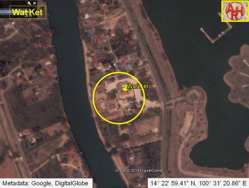 | Wat Ket is an active monastery located off the city island of Ayutthaya in the northwestern area in Ban Mai sub-district. It is situated on the east bank of the Chao Phraya River and just opposite the Suriyothai Memorial Park. In situ is a new monastic complex with different structures. The ordination hall (Th: ubosot) is built in the classic Late Ayutthaya style and stands in the classical east-west alignment. It has a three-tiered roof with beautiful decorated gables. The hall has two porches with two entries and is surrounded by a wall. Four columns on each porch support the roof. There are five rectangular windows on the northern and southern sides. North of the ordination hall stands a mondop surrounded by a gallery and topped by a small prang, containing a Phra Bat or Buddha footprint. Other typical monastic structures are also present as vihara, kuti etc. Historical data about the monastery and its construction are unknown. The site is not indicated on Phraya Boran Rachathanin's map drafted in 1926, as the temple is located in the outskirts of Ayutthaya. This temple is prone to flooding in the rainy season as it is located on the main river, while opposite, the water reservoir of the Queen Suriyothai Memorial was until recently used as an area to retain the overflow of water coming down from the north. Recently many structural works have been undertaken on the site to prevent its flooding. In the weekends there is a large market held on the temple premises. Wat Ket is located in Geo Coord: 14° 22' 59.41" N, 100° 31' 20.86" E. |