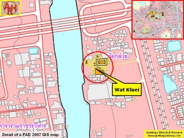 | Wat Kluei or the Banana Monastery is an active temple located off the city island in the eastern area in Kramang sub-district. The monastery is situated on the east bank of the Pa Sak River. The temple can be reached by taking the road (No 3477) parallel with the railway and south of the Pridi Phanomyong Bridge. North of the temple is Wat Phichai Songkhram and south lies Wat Ko Kaeo. In situ is a rather small monastic complex. The ordination hall (Th: ubosot) stands in the classic east-west alignment facing the Pa Sak river. The ubosot, built in the Late Ayutthaya style, has two elevated porches each with four columns supporting the two- tiered roof. Each porch has two entries. The southern and northern walls have three rectangular windows. The structure is surrounded by an inner wall, called kamphaeng kaeo (crystal wall), separating the monastic world from the secular world. The temple is mentioned in the Royal Chronicles of Ayutthaya as being the place where Luang Saraseni with his followers set up camp in December 1766. The Phraya of Tak was promoted to Phraya Kamphaeng Phet by the Siamese King Suriyamin (Ekathat) and appointed as a brigade commander of a boat army that he had to constitute at Wat Yai Chai Mongkhon in order to confront the Burmese in the open plains southeast of Ayutthaya. Phraya Kamphaeng Phet assigned the Phraya of Phetburi as his front guard, while Luang Saraseni’s troops were in support. The front guard consisting of five fighting boats got in contact with the enemy. The boats of the Phraya of Phetburi got completely encircled by the numerous boats of the Burmese. Phraya Kamphaeng Phet and Luang Saraseni moored their boats, watched but did not advance to reinforce the front guard. The troops of the Phraya of Phetburi were slain and the latter, after a heroic battle, was impaled by the Burmese. Phraya Kamphaeng Phet and Luang Saraseni fled the scene, did not return to the capital and set up stockades respectively near Wat Phichai and the adjacent Wat Kluei. Phraya Kamphaeng Phet, likely convinced that Ayutthaya would been soon lost to the Burmese, decided to seek his fortune in the south, while Luang Saraseni went his own way and fled elsewhere. [1] Its historical background and period of construction are unknown. Wat Kluei is indicated on Valentyn's map "Groote Siamse Rievier Me-Nam Of Te Moeder Der Wateren In haren loop met de vallende Spruyten Verbeeld" as Wat Kloy. [2] We find the monastery also on a map drafted in the mid-19th century and on Phraya Boran Rachathanin's map (1926). Wat Kluei is located in Geo Coord: 14° 21' 2.72" N, 100° 34' 57.07" E. References: [1] The Royal Chronicles of Ayutthaya - Richard D. Cushman - Page 512-514 / Source: Phan Canthanumat, British Museum, Reverend Phonnarat & Royal Autograph. [2] Valentyn, François - Oud en Nieuw Oost-Indiën (1626) - Deel 3 - Boek 6 - Beschryvinge van Siam en onsen Handel aldaar. |