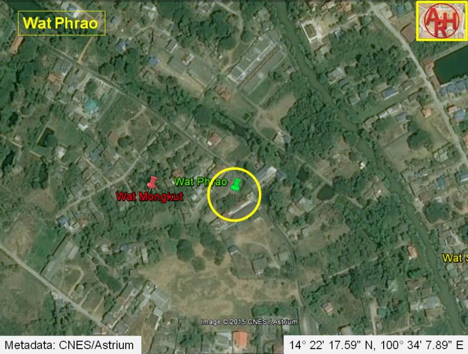 | Wat Phrao was located off the city island in the northern area in in Hua Ro Sub-district along a small canal giving access to Khlong Hua Ro (the old Lopburi River). The word "phrao" (พร้าว) is likely derived from "maphrao" (มะพร้าว) or coconut. The monastery stood in an area called before Thung Kaeo or "crystal field", bordered on the west and north by Khlong Sra Bua; on the east by Khlong Hua Ro opposite Wat Sam Wihan. This can be seen on Phraya Boran Rachathanin's map drafted in 1926, which indicates this temple. In the Ayutthayan Era a market was held near the temple. “Talat Wat Phrao” was one of the 30 land markets outside the city of Ayutthaya. In the manuscript "Testimony of the king from Wat Pradu Songtham", a document likely compiled in the Early Ratanakosin Period, is written that there was a land market at Wat Maphrao beside Ban Yuan Thale (1). At the village beside Wat Phrao, Indians and Thai made fragrant powder and oil, krajae scented water, krajae incense sticks, kradat incense sticks, and perfumes for sale. [1][2][3] The land of the former temple site was leveled shortly before a visit in December 2008. A boundary stone (bai sema) seemingly on its original pedestal and presumed to have belonged to the former temple, can still be seen on a private property in the immediate vicinity. The history of Wat Phrao and its construction date are unknown. The monastery is indicated on 1974, 1993 and 2007 Fine Arts Department (FAD) maps. The 2007 FAD map indicates Wat Phrao in Geo Coord: 14° 22' 21.04" N, 100° 34' 7.89" E. Following the contact I had with the villagers, the temple must have been situated in Geo Coord: 14° 22' 17.59" N, 100° 34' 7.89" E. Footnotes: (1) The village of the sea Vietnamese. References: [1] Geographical description of Ayutthaya: Documents from the palace - Dr Winai Pongsripian - Bangkok (2007). [2] Note on the Testimonies and the Description of Ayutthaya - Chris Baker - Journal of the Siam Society, Vol. 99, 2011 - page 77 (paragraph on KWPS). [3] Markets and Production in the City of Ayutthaya before 1767: Translation and Analysis of Part of the Description of Ayutthaya - Chris Baker - Journal of the Siam Society, Vol. 99, 2011- page 52-3. |