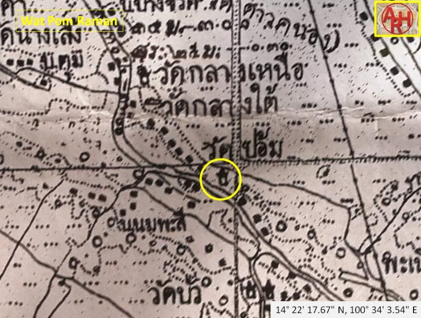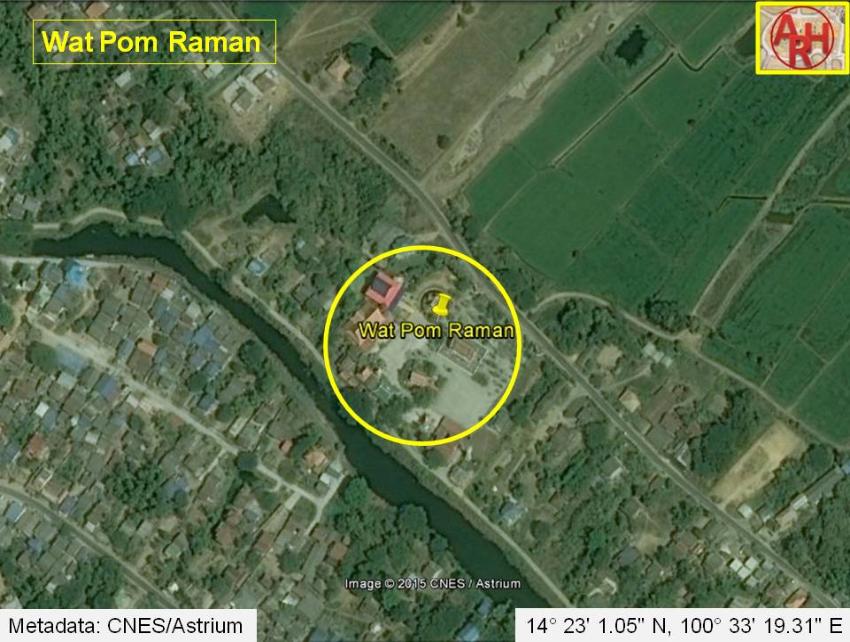 | Wat Pom Raman or the Monastery of the Mon Fortress is an active monastery located off the city island in the northern area of Ayutthaya in Wat Tum Sub-district. It is situated on the east bank of Khlong Hua Ro, the old Lopburi River in earlier times. Wat Klang Raman lies in its vicinity. In situ is an ordination hall (Th: ubosot) built in the Late Ayutthaya style (1629-1767 AD), with two porches in a northwest-southeast alignment. The roof is two-tiered and the ubosot has three rectangular windows on the longest sides. The front porch has two entries, while the roof is supported by four columns; the same for the porch at the rear. The hall is surrounded by a wall (Th: Kamphaeng kaeo or Crystal wall) and has two gates with a pointed arch and colorful gable. A sala with a large Buddha image has been recently built on the foundations of on old monastic structure. There is also a kind of prasat-like building surrounded by a pool, being a commemoration monument for the late Somdet Phra Phutthachan Tho Phrom Rangsi (1788-1872 AD). The revered monk who was patriarch in the reign of King Mongkut - Rama IV and known for containing Mae Nak's spirit. (1) Wat Pom Raman has the same historical background as Wat Klang Raman. Data about its construction is unknown. The site is not indicated on Phraya Boran Rachathanin's map drafted in 1926, as the temple is located at the outskirts of Mueang Ayutthaya. Wat Pom Raman is located in Geo. Coord.: 14° 23' 1.05" N, 100° 33' 19.31" E. Footnotes: (1) The legend goes more or less as follows: Mae Nak lived in a small hut along Khlong Phra Khanong near Wat Maha But in Bangkok with her husband Thit Mak. Her husband was conscripted and had to go to war. Mae Nak, being pregnant, remained behind. She died during childbirth, being alone at home. Her neighbors buried her in the ground. Out of love for her husband, her spirit did not wanted to leave and waited his return. Her husband came back home from war and they continued to live together. One day her husband realized he was living with a ghost and he backed-off to the temple. Mae Nak was furious, pursued her husband and gave a bad time to the local community, terrifying everybody. Somdet Phra Phutthachan Tho Phrom Rangsi could finally overtake her and contain her spirit in the forehead bone of her skull and bound that piece of her skull within his waistband. Wat Maha But is often called Wat Mae Nak Phra Khanong, after the spirit house of Mae Nak located on the premises. |