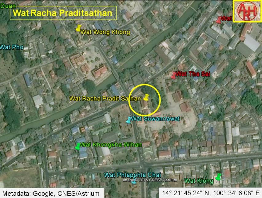 | Addendum Wat Racha Praditsathan is indicated on a map drafted in the mid-19th century and on Phraya Boran Rachathanin's map of 1926. The mid-19th century map denominates the temple as Wat Pra and indicates the presence of a chedi. The Monastery of the Royal Installation (1), as Richard Cushman translated the name of this Siamese temple [1], is also mentioned in the Royal Chronicles of Ayutthaya during the reign of King Phumintharacha (r. 1709-1733). At the end of his reign, preparations were made for the royal succession and the mostly - inevitable - fight for the throne. The old King had one of his sons designated as heir to the throne, without consent of his younger brother, the deputy king. The king ordered some defensive works done inside the capital all along Khlong Pratu Khao Pluak until Pratu Jin (The Chinese Gate) and one of the defensive stockades was established on the western bank of Khlong Pratu Khao Pluak in front of Wat Racha Praditsathan and besides the Elephant Bridge. This stockade fell under the command of a certain Khun Si Khong Yot. The deputy king, living at the Front Palace, ordered the same defenses set up along the eastern bank of the canal. The son of the deputy king took the occasion to shoot and kill Khun Si Khong Yot in his stockade from the window of a house on the edge of the Pratu Khao Pluak Canal. It was the start of a bloody internal war of succession. Wat Racha Praditsathan is also mentioned in one of Prince Damrong Rajanubhab's writings. At the time the Burmese stood before the gates of Ayutthaya in 1767, the ex-King Uthumphon left the Pradu Rongtham Monastery and came to reside at Wat Racha Praditsathan. It was here that he was arrested at the fall of Ayutthaya and brought under guard at the fortification of Pho Sam Ton. [2] Wat Racha Praditsathan is located in Geo. Coord.: 14° 21' 45.24" N, 100° 34' 6.08" E. Footnotes: (1) Racha = royal; Praditsathan = to install. References: [1] Richard D. Cushman - The Royal Chronicles of Ayutthaya (2006) - page 413 / Source: Phan Canthanumat, British Museum, Reverend Phonnarat & Royal Autograph. [2] Prince Damrong Rajanubhab - Our Wars with the Burmese (1917) - White Lotus, Bangkok (2000) - page 161. |