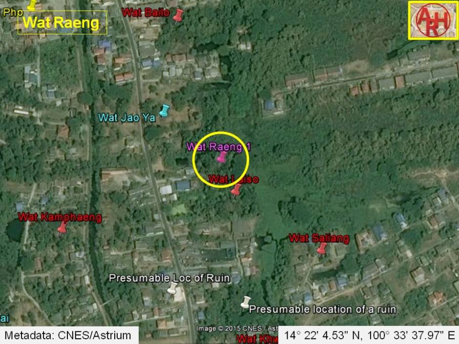 | Wat Raeng or the Monastery of the Vulture is located off the city island in the northern area of Ayutthaya in Khlong Sra Bua Sub-district. The temple was situated just south of Wat Chao Ya on the western bank of Khlong Pla Mo in an area called Thung Kaeo. This temple is indicated on different maps but not quite in the same location. On Phraya Boran Rachathanin's map (PBR) drafted in 1926 the temple is situated on the east bank of Khlong Pha Lai just north of Wat Khwit and more or less at the same level of Wat Takrai (west of Khlong Sra Bua). On a 1974 Fine Arts Department map (FAD) the monastery figures on the east bank of Khlong Pha Lai, just north of Wat Khwit and more or less at the same level of Wat Kamphaeng (along the west bank of Khlong Sra Bua). This map follows largely PBR's temple lay out. On a 1993 FAD map Wat Raeng figures on the west bank of Khlong Pla Mo in between Wat Chao Ya in the north and Wat Laiso in the south. Conclusion of the above is that the PBR 1926 and the FAD 1974 maps put Wat Raeng in the location just north of Wat Khwit on the west bank of Khlong Pla Mo. When looking on a satellite map we find a square like bushy area surrounded by water. Local villagers opposite Khlong Pla Mo stated that there was a brick mound in situ. This area was not yet visited as it is not easily accessed. On the location mentioned on the 1993 FAD map, just north of Wat Laiso, we found a brick mound. Scattered bricks all around let us presume this was an ancient temple site. On top of the mound stands a concrete structure, built somewhere twenty years ago and abandoned. Likely its builder sought a dry place to escape flooding, as this area is prone to inundation, but had to halt the construction as the site belongs to the FAD. With the exception of the clearly visible brick mound, nothing more is observed as most of the area is covered in silt. No pieces of broken Buddha images or boundary stones were seen. An uprooted tree displayed a few remnants of tiles. The site as thus must be classified as a brick mound. The site is surrounded by water on three sides, with the eastern side being Khlong Pla Mo. On the northwestern side is a pond, said to be dating from the Ayutthayan era. A wooden bridge on the north leads to the site. A local villagers told us the bridge was the initial point of access to the site from the road, but this access was now obsolete. He also told us there was even an FAD information board installed a few years ago, but now disappeared due to the flooding in 2011. The access via a bridge could indicate that the temple stood an islet before. In fact the 1926 and 1974 maps indicate Khlong Pha Lai on its western side. Wat Raeng stood as thus on its east bank. It remains though a point of discussion as Khlong Pha Lai seems to have taken a turn west towards Khlong Sra Bua and Wat Kamphaeng, north of Wat Khwit, somehow 200 meters south of this location. The remaining brick mound can be easily visited from the road, just keep right of the pond. Wat Raeng is mentioned in the Royal Chronicles of Ayutthaya and notorious in Siam's history. It was in this area that the usurper King Worawongsathirat and his queen were killed in 1548 AD by Khun Phirenthorathep, the Head of the right division of the major guard. The story goes as follows: Prince Yot Fa was the oldest son of King Chairacha (r. 1534-1547) and succeeded the throne. Due to his young age he was unable to manage the Royal affairs and Prince Thianracha and Tao Sri Sudachan, King Chairacha's non-royal concubine, acted as regents. Some conflicts between the latter two arose and Prince Thianracha entered the monkhood at Wat Rat Praditsathan, leaving the State affairs to Tao Sri Sudachan. The latter committed adultery and with intrigues arranged that her lover (with the title Worawongsa) became Regent. It was then that Queen Regent Si Sudachan hatched a plan to place her lover, Khun Worawongsa, who was only a minor palace official, onto the throne. They poisoned Prince Yot Fa in June 1548 and declared Khun Worawongsa the new king, further consolidating power by executing the nobles that dared to voice disapproval. Despite these measures, Worawongsa’s short reign would last only six weeks. Khun Phirenthorathep, a descendant from the House of Sukhothai, did not agree with the usurpation of the throne by Worawongsa. Phiren held a secret meeting with some trustees being Khun Inthorathep, Mun Ratchasena, and Luang Si Yot and decided to put Prince Thianracha on the throne. They consulted an oracle at the recitation hall of Pa Kaeo Monastery (present Wat Yai Chai Mongkhon), which turned out in the favor of Thianracha. Early January, 1549, Worawongsa announced his intention of proceeding by boat to the Elephant Kraal to see a very large elephant caught. Phiren initiated the Governors of Sawankhalok and Phijai into his plan. The royal barge of Khun Worawongsa and Queen Sri Sudachan was intercepted in a narrow creek of the Ban Pla Mo Canal, leading to the corral. The usurper King and his Queen were dragged ashore and beheaded, together with their infant daughter. Their bodies were impaled in the vicinity of the ambush, at Wat Raeng. The execution of King Worawongsathirat and his queen was thus far from royal. At that time the custom was to put the condemned in a red velvet bag and deliver them a fatal blow with a sandalwood club, preventing royal blood from touching the ground and the corpse from being seen or directly touched. Both, their royal status being in doubt and contrary to the principle, were immediately beheaded, a fast and effective way to get done with. The public display of the impaled bodies was classic for that time as a warning to all followers. The brick mound is situated in Geo Coord: 14° 22' 4.53" N, 100° 33' 37.97" E. References: [1] Thailand, a short history - David K.Wyatt (2003) - page 78. [2] The Royal Chronicles of Ayutthaya - Richard D. Cushman (2006) - page 24 & 25 / Source: Phan Canthanumat, British M