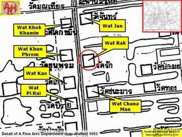 | (Detail of a 1993 Fine Arts Department map - Courtesy Khun Supot Prommanot, Director of the 3th Regional Office of Fine Arts) |