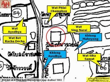 | (Extract of a 1993 Fine Arts Department map - Courtesy Khun Supot Prommanot, Director of the 3th Regional Office of Fine Arts) |