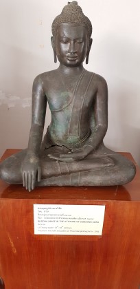 | (Bronze Buddha images in the attitude of subduing Mara in U-Thong style dating back to the 13-14th century and found in the left shoulder of Phra Mongkhon Bophit in 1956; displayed at the Chao Sam Phraya National Museum) |